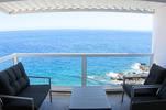 Het highlight is het grote zonneterras met tuinmeubelen en ligstoelen, die een adembenemend en onverhulde uitzicht op zee biedt. Deze is gedeeltelijk overdekt en voorzien van een barbecue.
